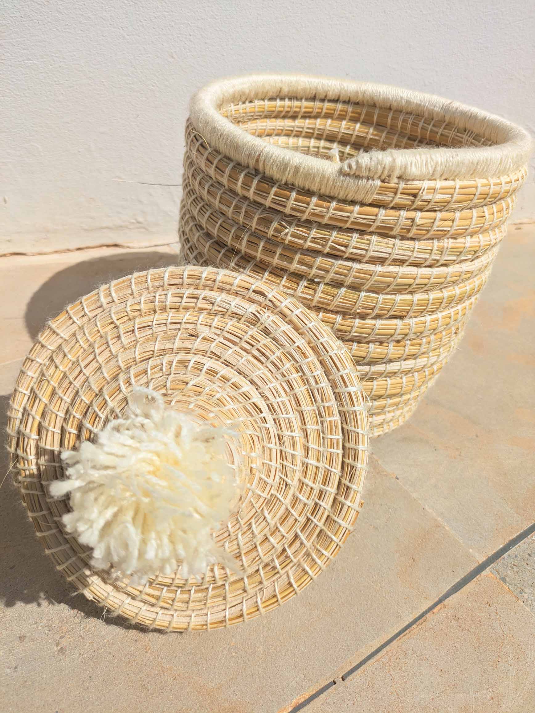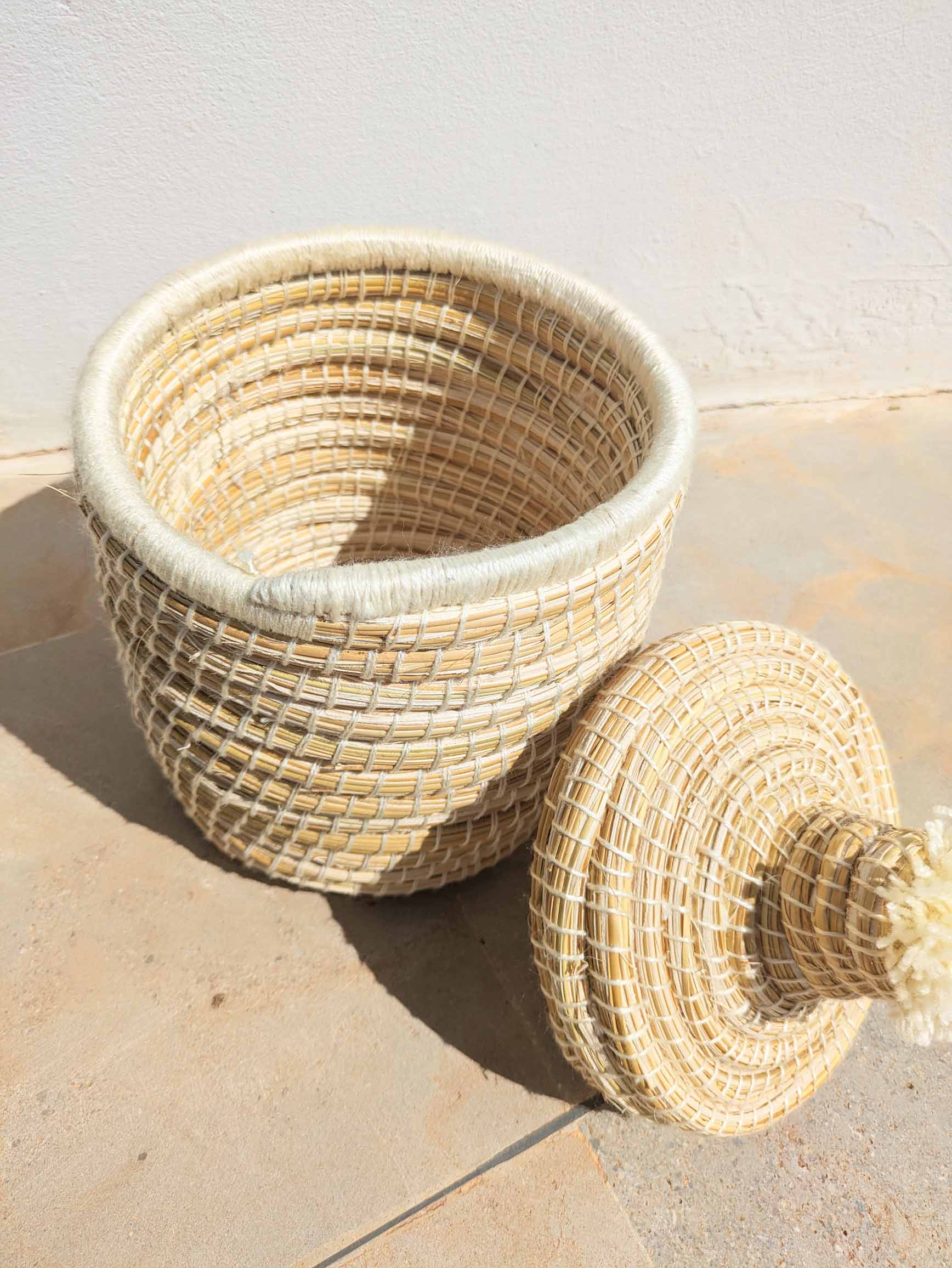 ✨ Un savoir-faire ancestral entre vos mains Ce panier unique est entièrement tissé à la main selon des techniques traditionnelles transmises de génération en génération. Chaque fibre naturelle est soigneusement entrelacée pour créer une pièce d’exception qui raconte une histoire. Ce qui peut engendrer de très légères variations de nuances et de taille.