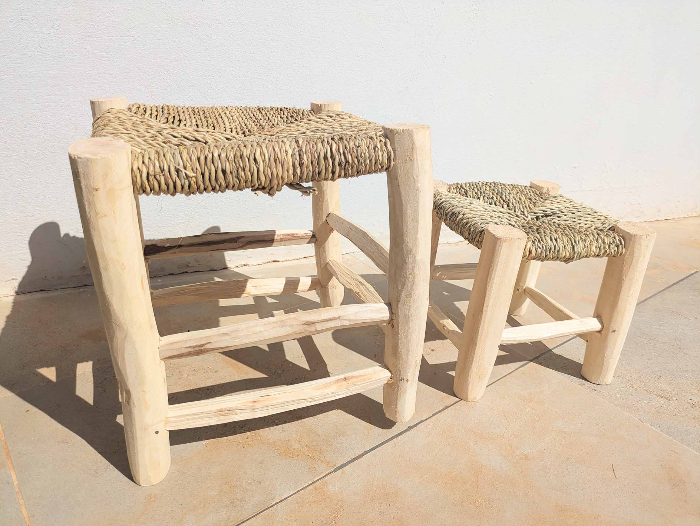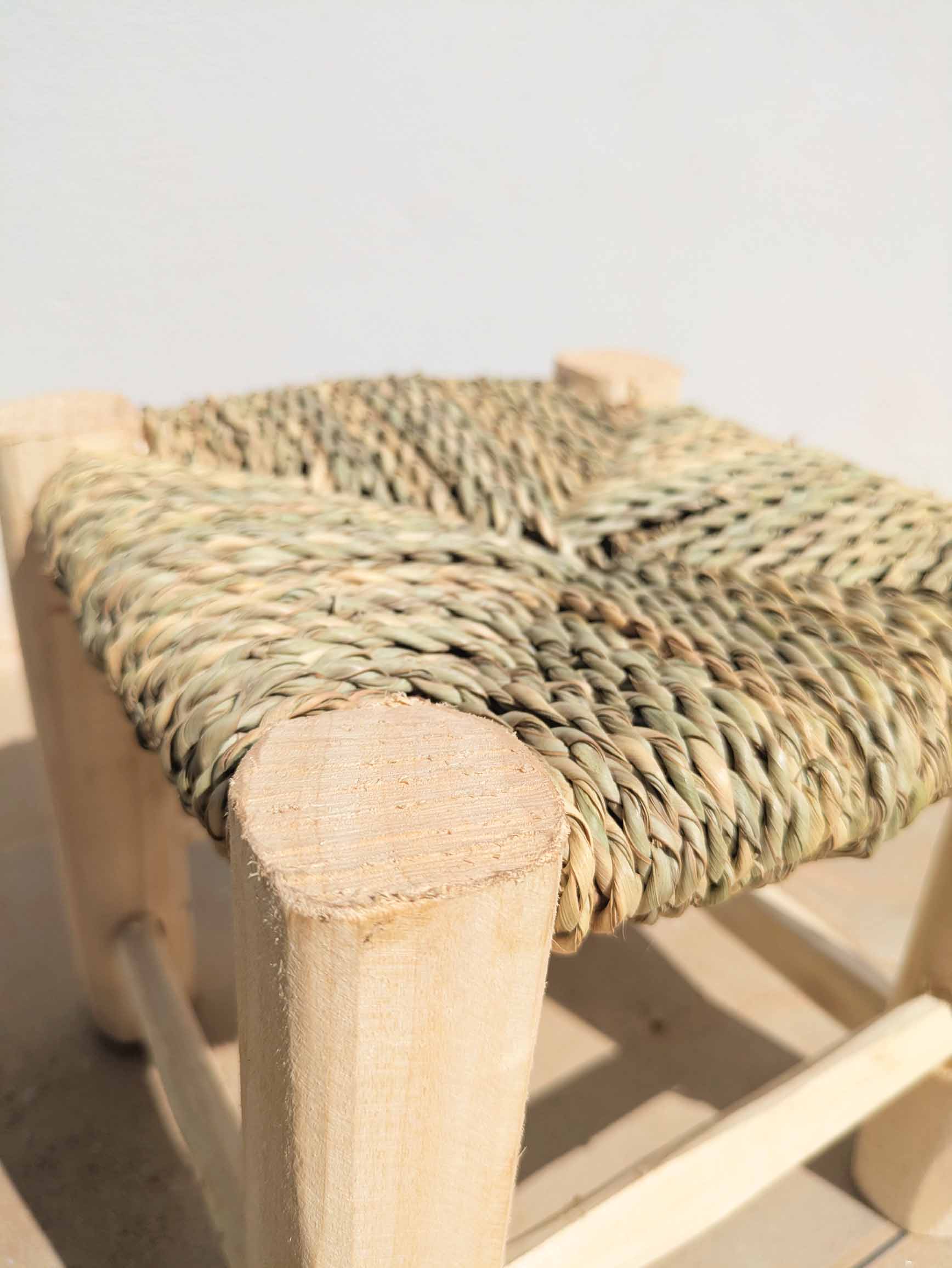Ce tabouret authentique allie la robustesse du bois naturel à la douceur de l’assise en paille tressée à la main.